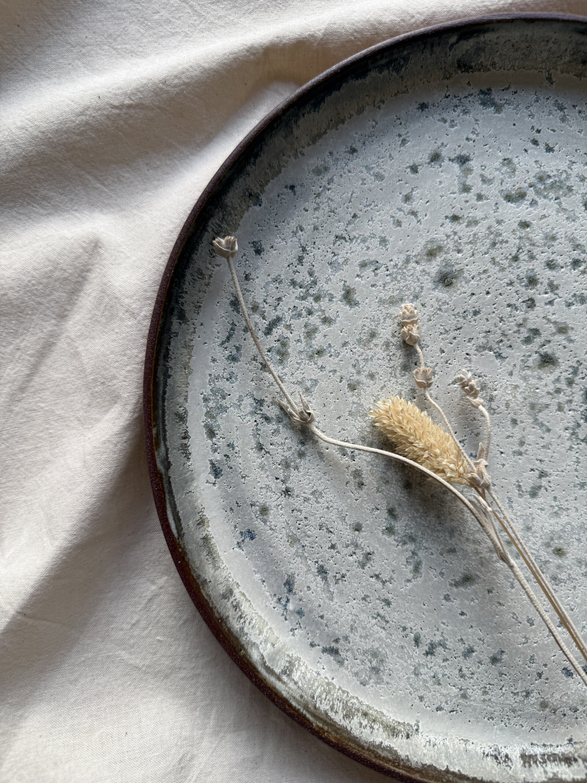 Mars surface is unique ceramic plate handcrafted with care from terracotta clay stoneware clay. Shaped on potter s wheel. This serving plate offers both aestetic appeal and practical functionality. The interior is coated with three layers of glaze white matte and whitte matte effect glaze. The raw unglazed underside preserved the natural look of the clay. This handmade piece gives character to every serving. Dishwasher safe.