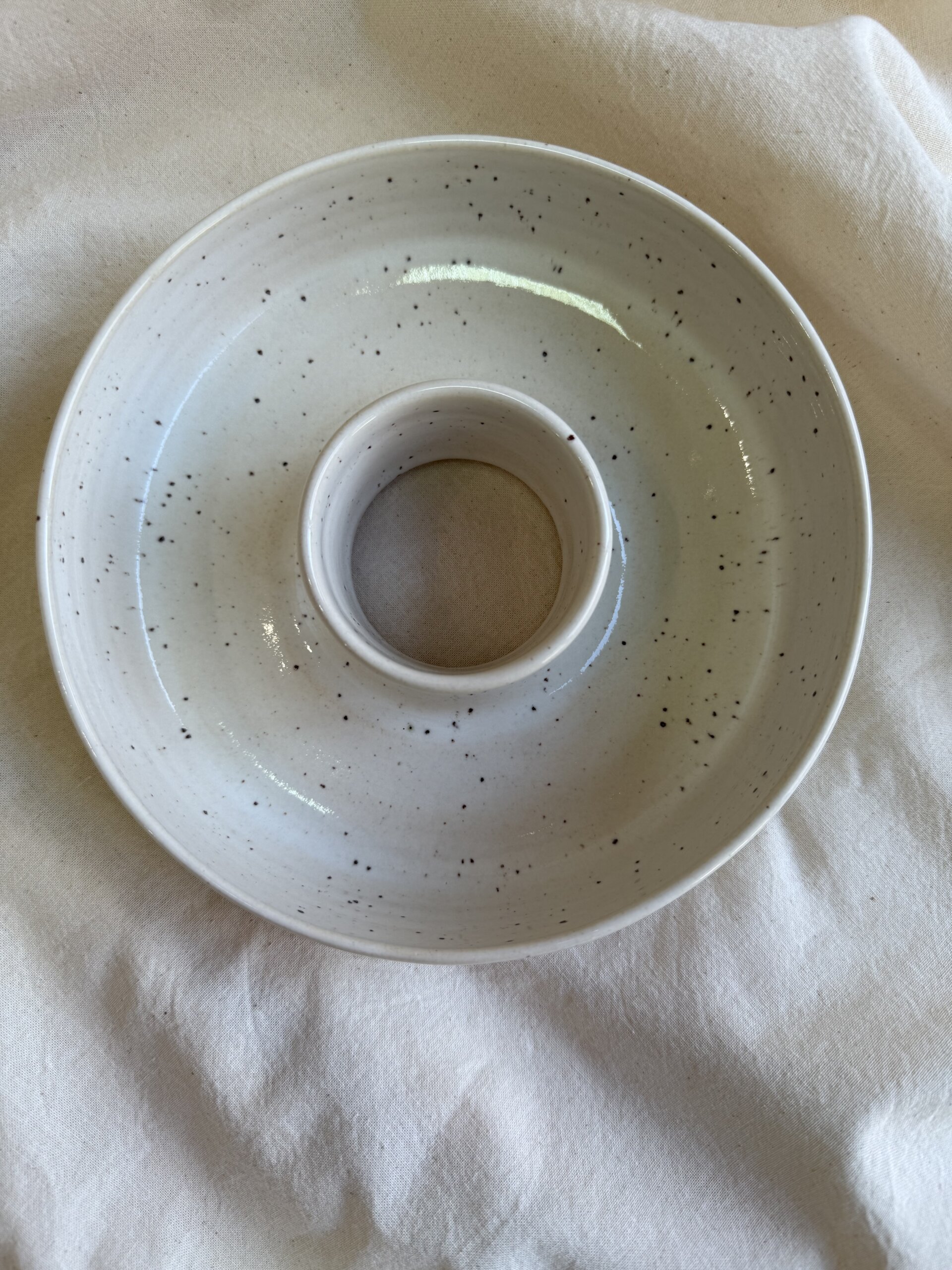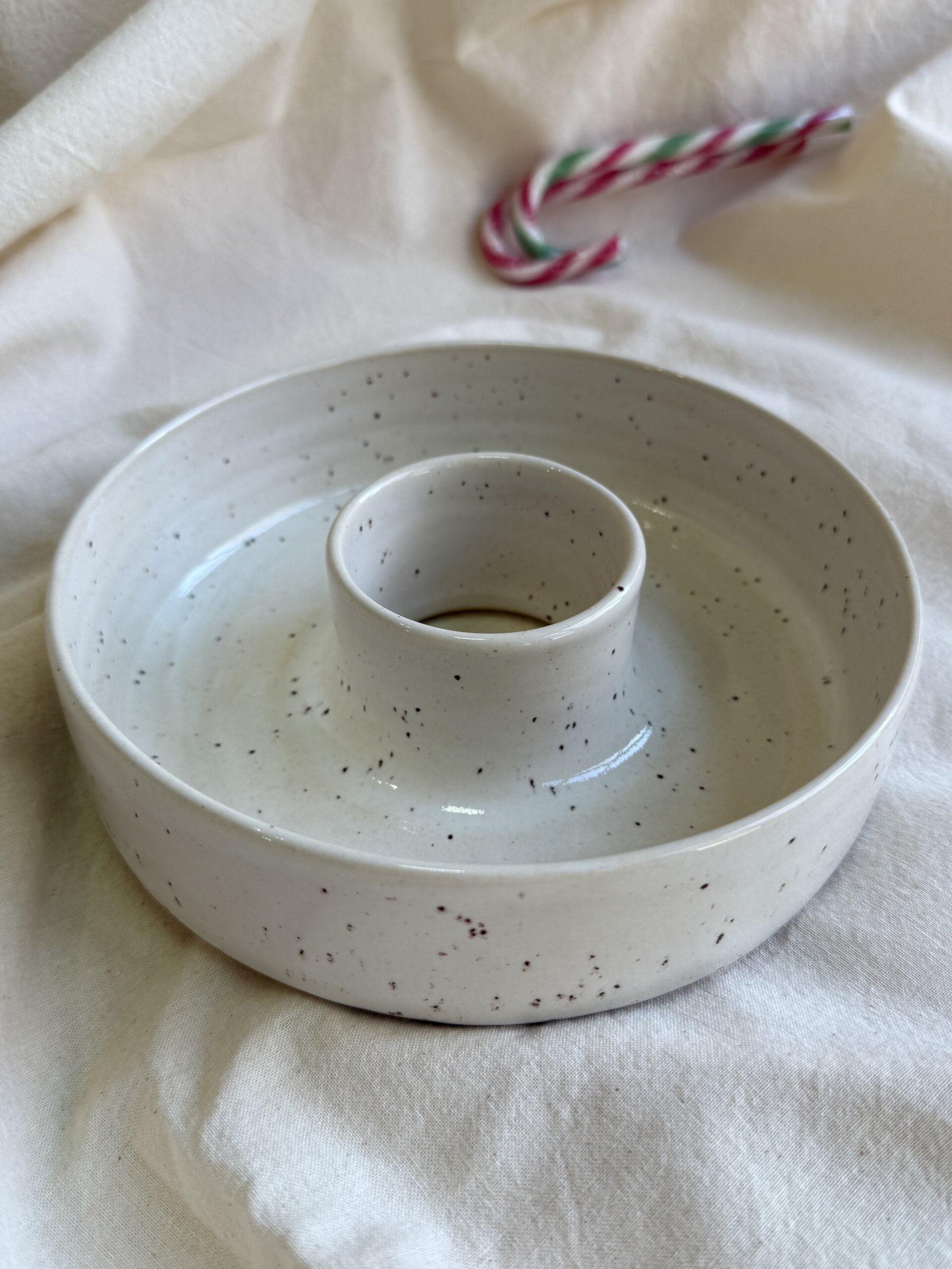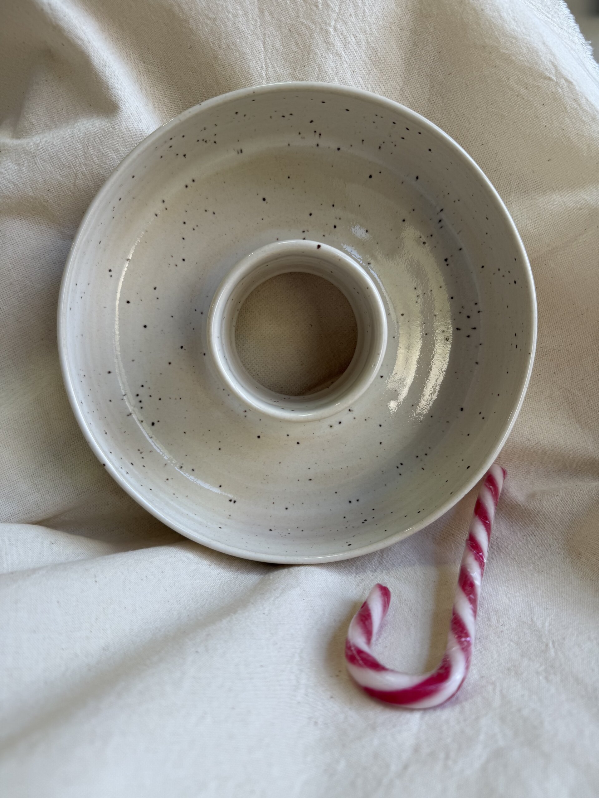 Wheelthrown bowl made of speckled clay, glaze with foodsafe cream white glossy glaze.