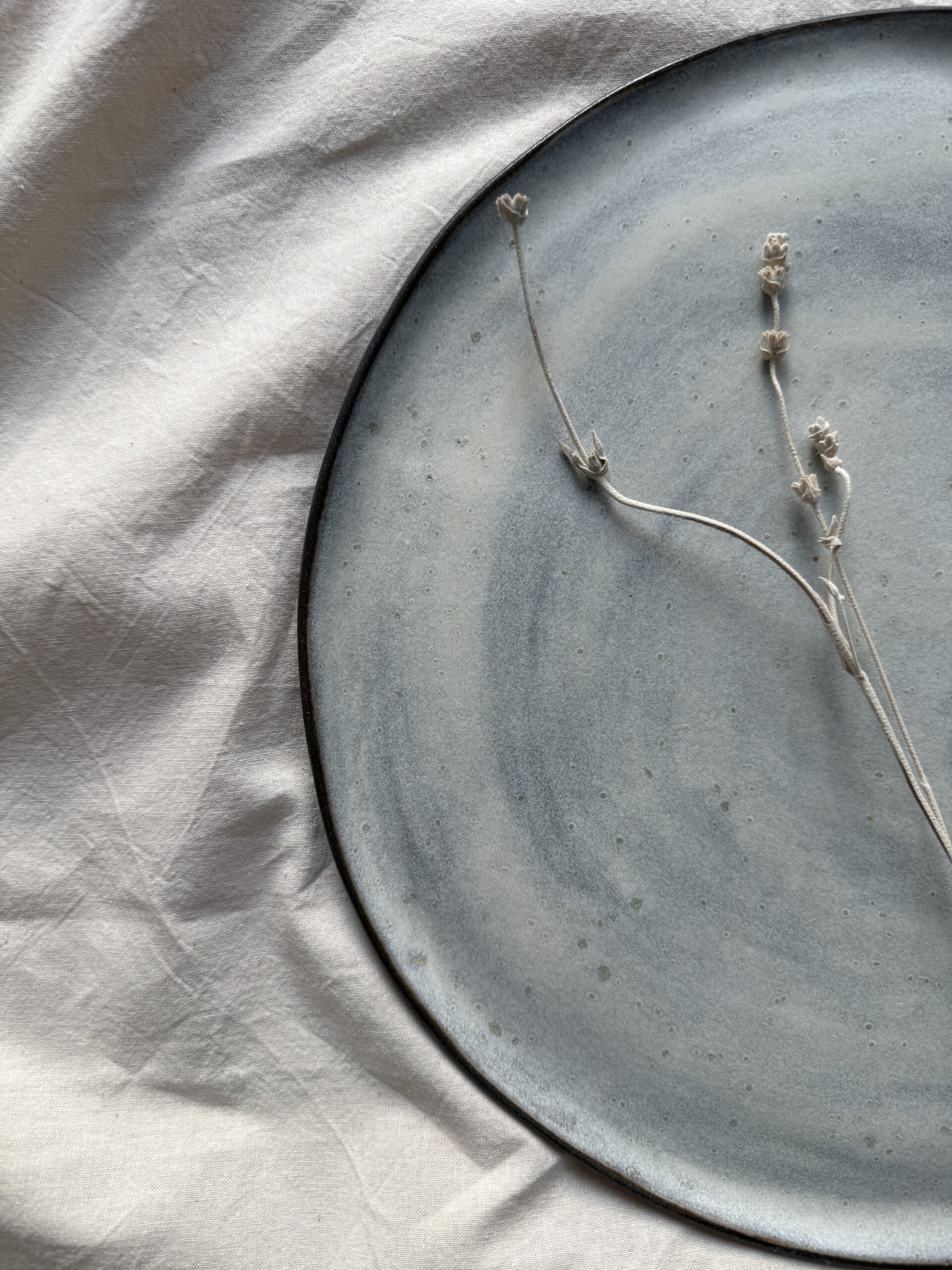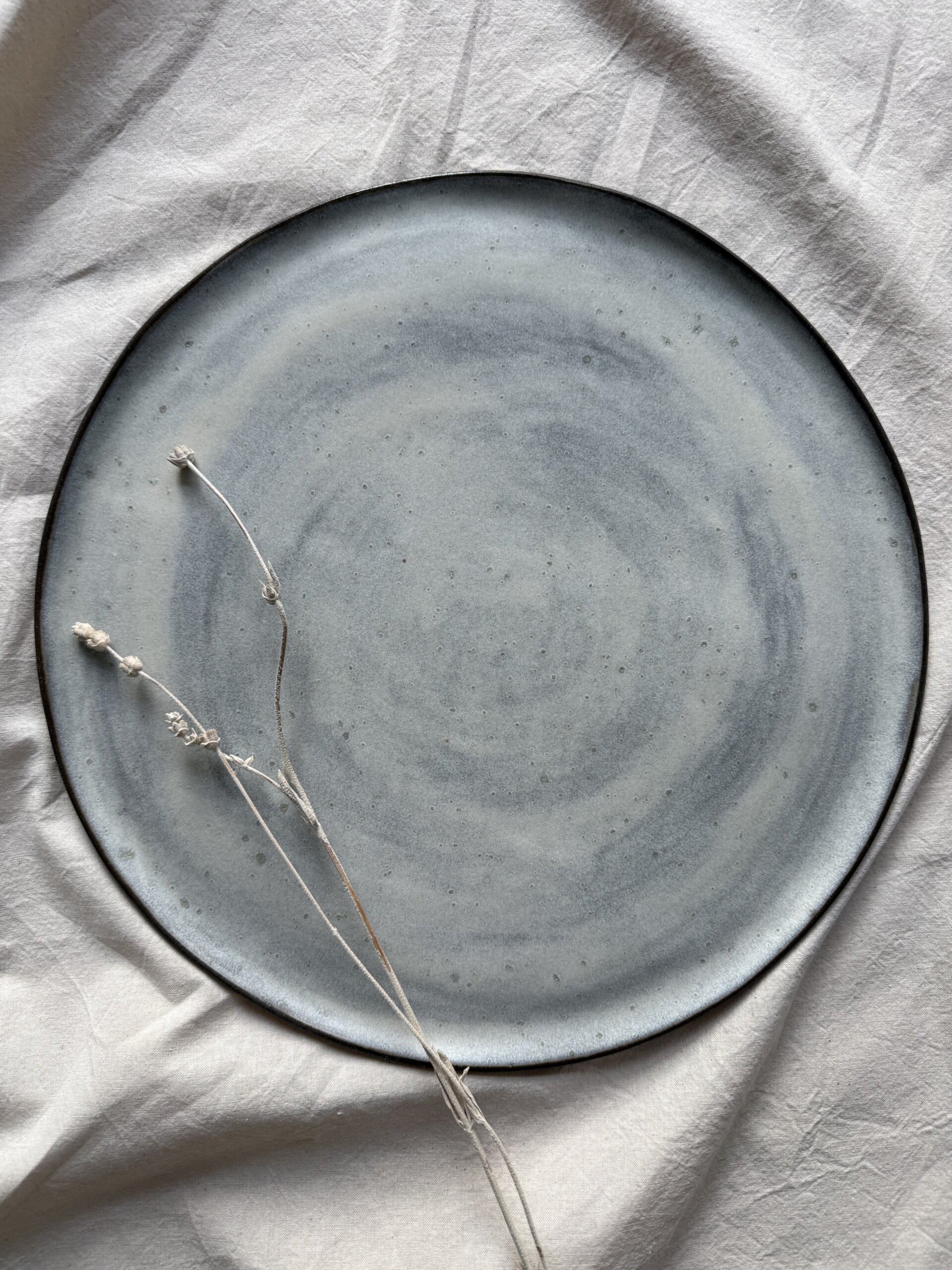 Big serving plate slab roled. Plate is made of black stoneware clay. White matte effect glaze used. Glaze is food safe and non toxic. Dishwasher safe although hand wash is recommended.